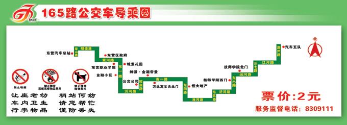 2、165路汽車五隊發車經湖州路→遼河路→東七路→運河路→東六路→沂河路→東五路→濰河路→東四路→南一路→膠州路→沂河路→東一路→黃河路→明鏡路→蒙山路→汽車總站,票價不變。
