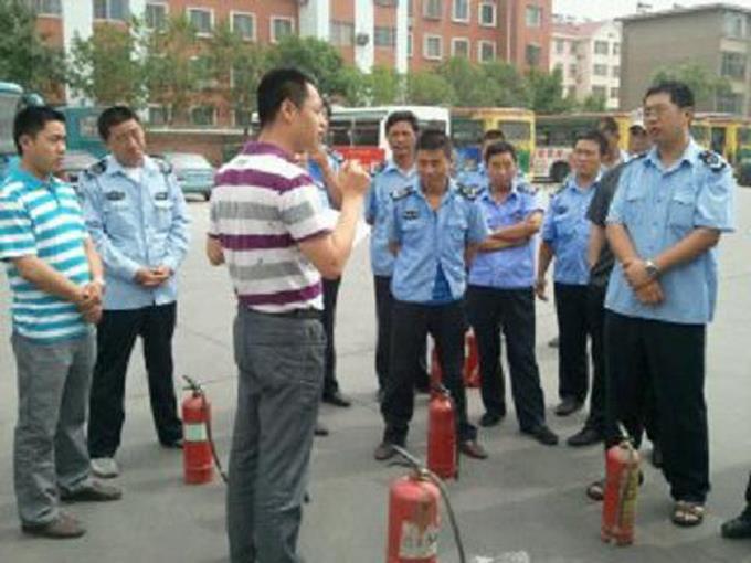 演練前,車隊領導景洪培同志首先講解了公交車發生火災的幾種情況和特點、遭遇突發火災時應對的措施、步驟以及應重點注意的事項,救火時應先做什么,后做什么,應該怎么做,需要提醒乘客什么,必要時讓乘客提供什么樣的幫助等一系列的問題。并再三強調要求駕駛員做好日常兩檢(出車前、收車后)和例查(油電路、滅火器、安全錘),把消防工作重點放在預防上。萬一突遇車輛火災,應把保護乘客生命安全,及時沉著冷靜疏導乘客放到第一位,然后再迅速進行滅火,報警,通知車隊等工作。最后,所有參加演練的人員模擬進行了車輛著火后,駕駛員如何停車、開車門、疏導乘客下車,斷電源、正確使用滅火器滅火等一系列的實際操作演練,直到參與的駕駛員都能熟練掌握突遇車輛火災時的搶險程序。