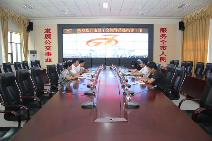 2013年7月2日下午,東營市總工會副調研員宋新群及市總工會生產保護部的領導來市公交公司檢查指導工作,領導們冒著炎炎烈日,查看了安全生產情況、“工人先鋒號”掛牌亮崗情況及女工工作情況,并針對公司生產現狀,提出了許多好的工作建議和工作思路,最后實地查看了公交書法繪畫攝影展和3G智能調度系統。