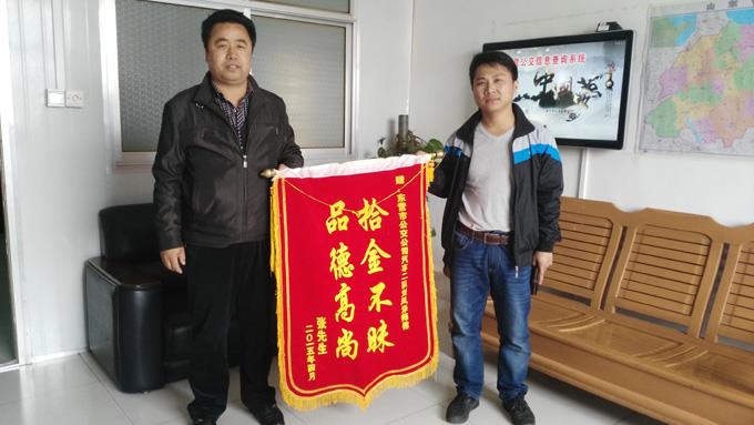 近日,市民張先生手執一面寫有“拾金不昧,品德高尚”的錦旗來到東營市公交公司汽車二隊,感謝劉風澤師傅拾金不昧的高尚品德。