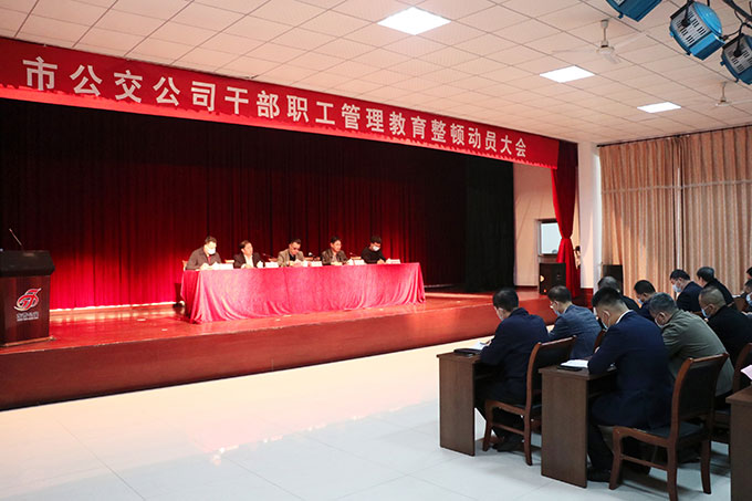 2021年11月5日上午9時(shí),市公交公司干部職工管理教育整頓動(dòng)員大會(huì)在南會(huì)議室召開(kāi),市交通運(yùn)輸局黨組成員、市交通運(yùn)輸事業(yè)服務(wù)中心主任王杰出席會(huì)議,公司黨委書(shū)記趙龍同志主持動(dòng)員會(huì)。
