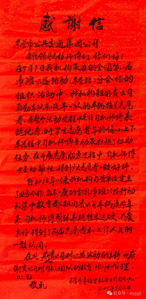 近日,市幸福里社會服務中心的燕女士將一封飽含感恩之情的感謝信送至市公交集團通勤車隊,以表達對該車隊8名駕駛員熱心周到服務的深深謝意。