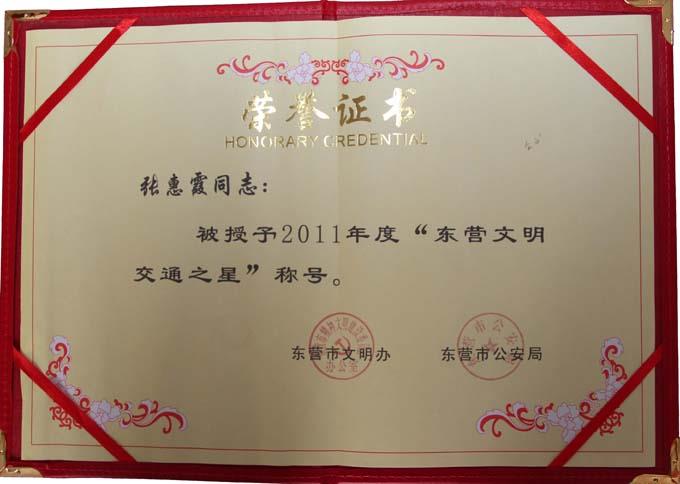 近日,在東營市文明辦和東營市公安局聯(lián)合組織開展的“東營文明交通之星”評選活動中,市公交公司張惠霞、劉軍利、楊金光等三名公交駕駛員經(jīng)過層層選拔在1000余名候選人中脫穎而出,最終獲得了“東營文明交通之星”榮譽(yù)稱號。