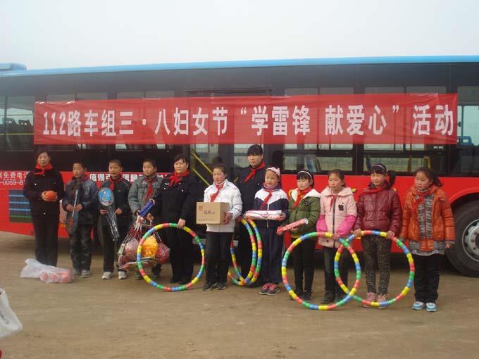 當前,“學習雷鋒同志,弘揚雷鋒精神”活動正在全國上下如火如荼的進行。三、八節前夕, 112路的姐妹們就謀劃著用本線路在公司“文明服務示范線路”評比中獲得的獎金,在三八婦女節當天做點有意義的事,以“關注社會、奉獻愛心”的方式歡度自己的節日。最后一致商議決定,對大杜小學進行捐助。
