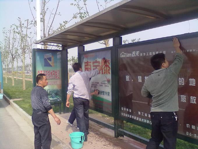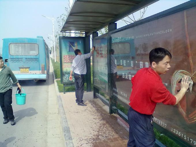市公交公司汽車五隊對開發區轄區內公交候車亭和站牌進行了集中清理