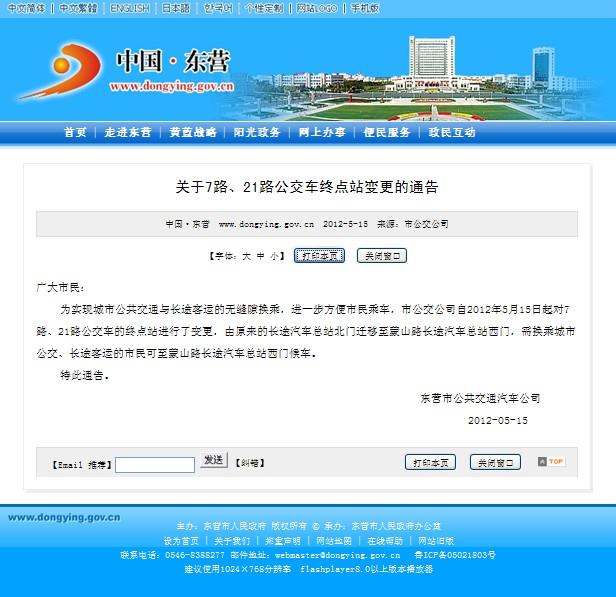 2012年5月15日東營交通網站報道