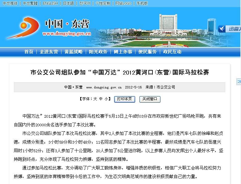 2012年5月16日東營市政府網站報道