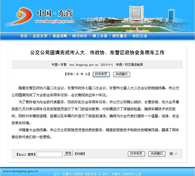 2013年2月1日東營市政府網站報道